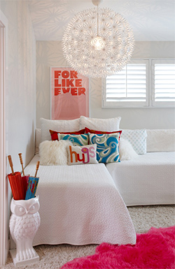 A simple white room can suddenly become a vibrant and creative environment with the addition of some brightly coloured accessories or feature walls painted in a strong colours or a relaxing haven with cosy muted natural tones and hues.